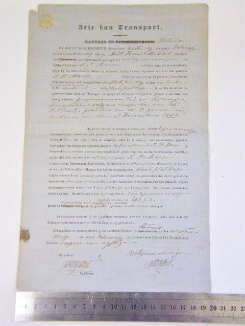 Transport Deed for the farm Platkop, Pretoria to JP Maree on 1 February 1859 - as per photo