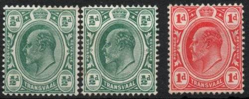 Transvaal 1905-1909 KEVII ½d (x2) lightly mounted and mint no gum and 1d lightly mounted mint.
