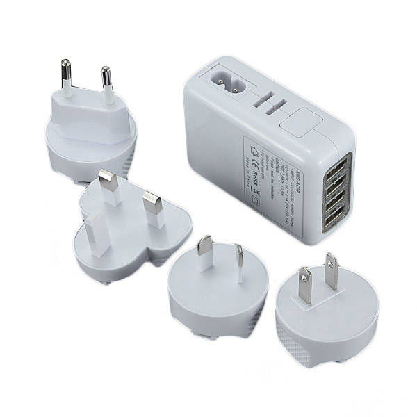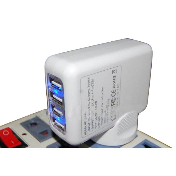 Description: Brand new and high quality. Portable, ideal for travel. Power and charge up to 4 USB powered devices with the proper USB cables. Provides standard USB 5V at up to 2A(max). AC plug can be removed easily by presing the button and pull out from the main unit. model:KMS-AC09-P plug:US¿¿?EU¿¿?UK¿¿?AU INPUT:100V-240V AC. 50/60Hz, 300MA OUTPUT:5.0V==2.1A(FOR USBx4) OFF-LOAD:<0.5W Great for charging phones, cameras, MP3 players and other USB device. It can charge 3-4 phones at the sametime CAUTION Please read the instruction before use. Package included: 1x 4 USB Port Wall Charger