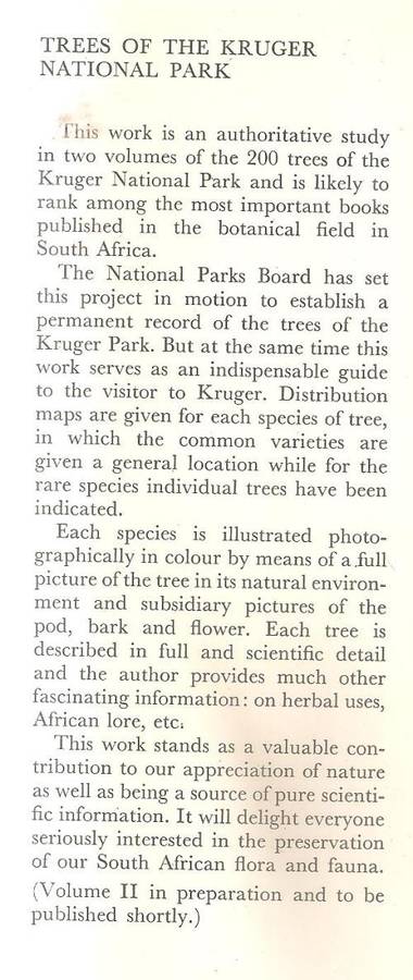 Trees of the Kruger National Park Vol I By: P. van Wyk