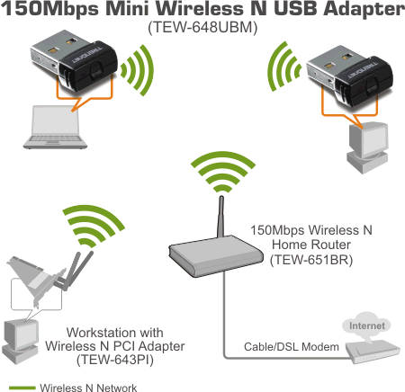 TRENDnet Wireless N 150 Mbps Mini USB 2.0 Adapter, Upgrade your Laptop or Desktop to Wireless N, WPS, QoS, TEW-648UBM