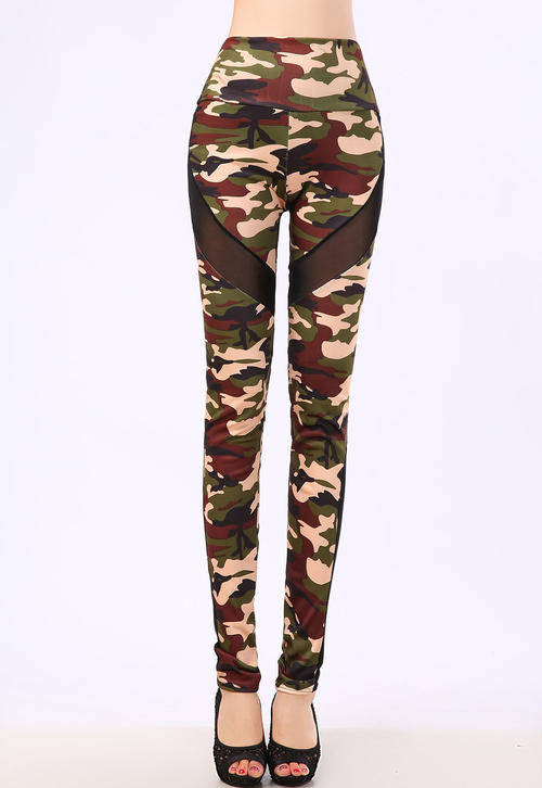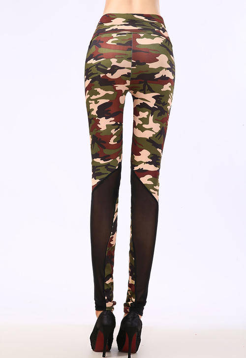 TRENDY CAMO WITH MESH INSERT DETAIL LEGGINGS