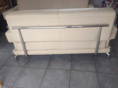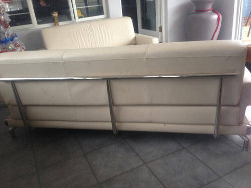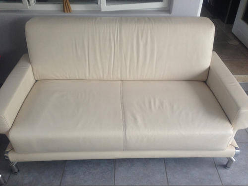 Trendy Off White 2 piece lounge suite made of bonded leather. The suite is in good condition with no tears or scratches. Size 2 seater 150cm long and the 3 seater is 190cm long.