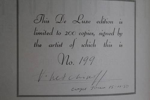 Tretchikoff by Richard Buncher, publ. by Howard Timmins Cape Town for George Allen & Unwin Ltd. London. First edition 1950, Limited to 200 copies. This is the first book about the artist. SIGNED & NUMBERED de luxe limited edition in slipcase. The copies of this book with the spiral binding on the spine were for general circulation and of much inferior quality. This is the limited edition without the spiral wire on the spine. Number of the book (199) embossed on the front board. Slipcase shows some wear on the front edge but is still in good condition. Book is clean internally and in very good condition.