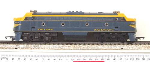 On auction is this loco in very good used condition. It is fitted with Hornby couplings and metal(drive) wheel sets, front bogey plastic. It was tested and operatetes well in both directions. Paintwork and decals are in very good condition for its age. This is for the serious Tri-Ang vintage collector. Original box in fair condition. Please see photos for detail for it is part of the description. Contact me by email for inquiries.