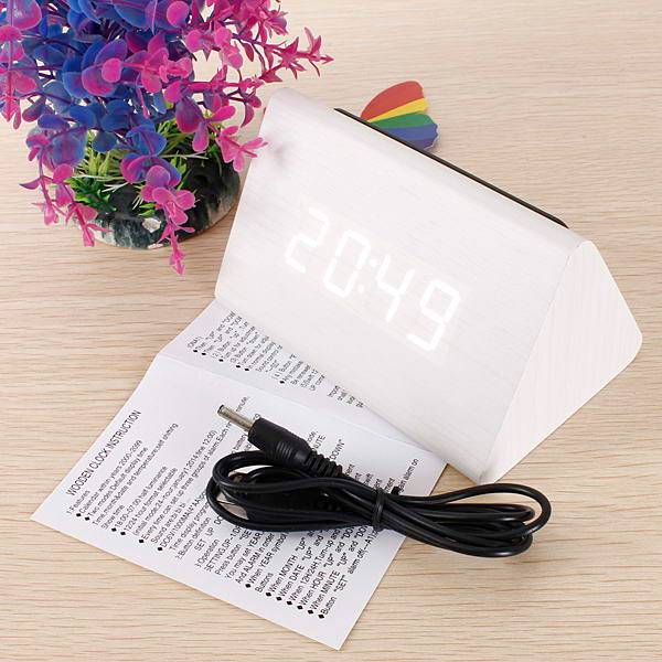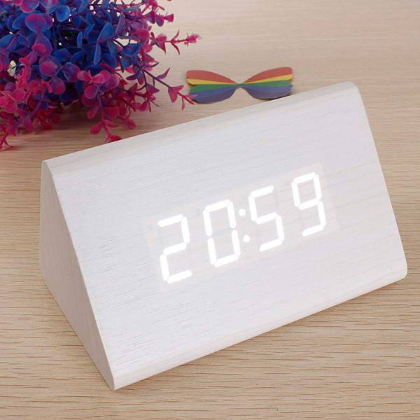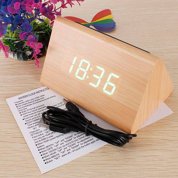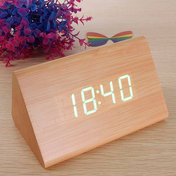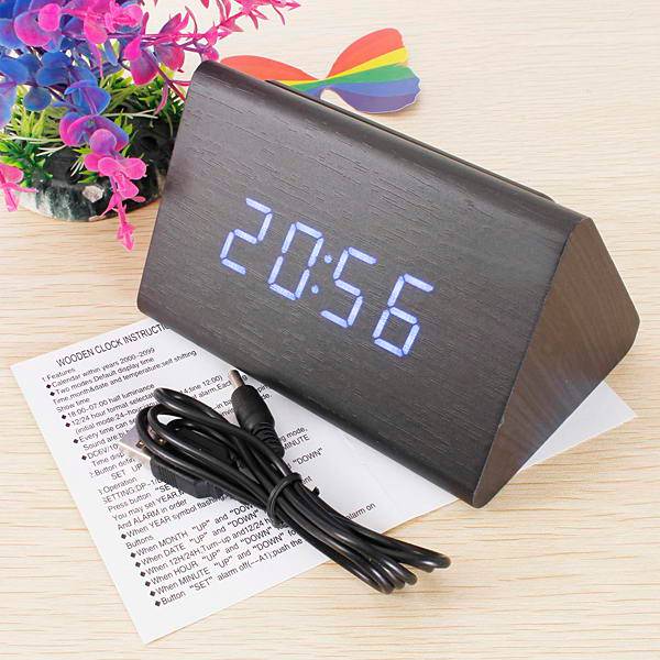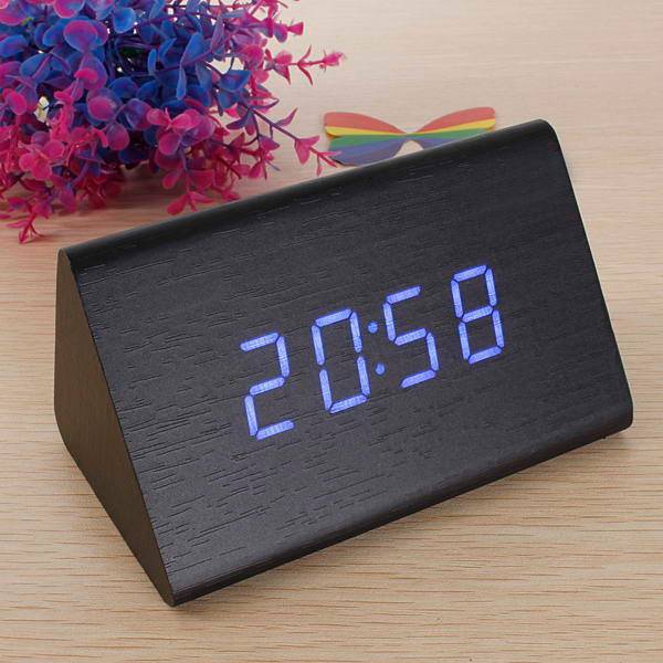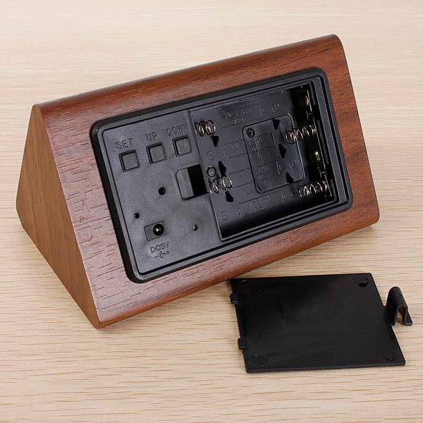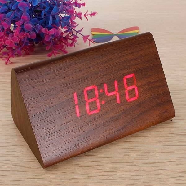 Triangular Wooden LED Alarm Clock Wood Digital Thermometer Clock