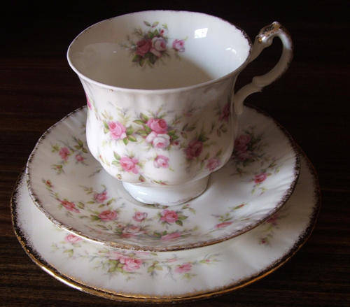 Trio Paragon "Victorian Rose" (Gilding wear on the cup and a little on the saucer, cake plate looks good)