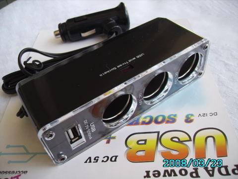 Triple Car Cigarette Lighter extension + 1 USB charger