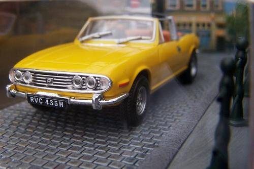 Triumph Stag. Universal Hobbies 1/43 die cast model car as seen in the James Bond movie "Diamonds are Forever". Model in diorama display case. Please note: Perspex cover has crack. Model and diorama in excellent condition.