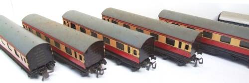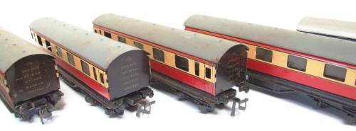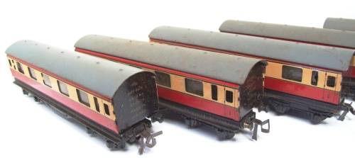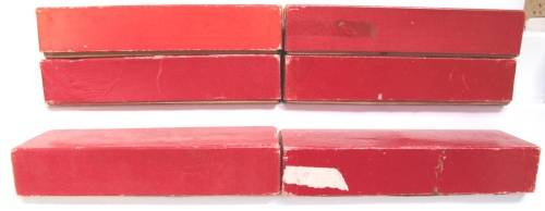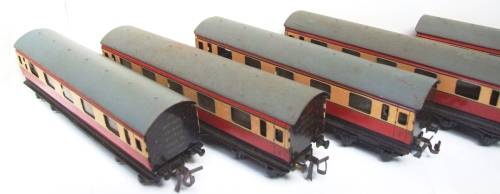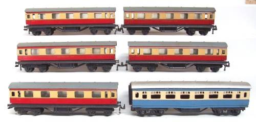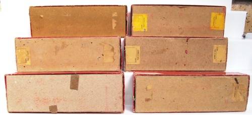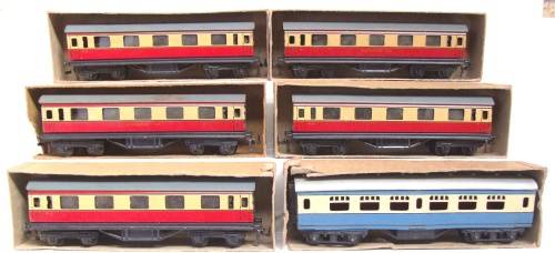 On auction are these vintage early 50's models in good condition for its age. 6x Passenger coaches with knuckle type couplers in boxes. All these models had slight corrosion on the metal parts that was removed and treated. The blue and cream coach has no couplers. Overall it is in good condition for its age. This lot is for the vintage collector. Please see photos for detail for it is part of the description. Contact me by e-mail for inquiries. Item sold as per photos, as is