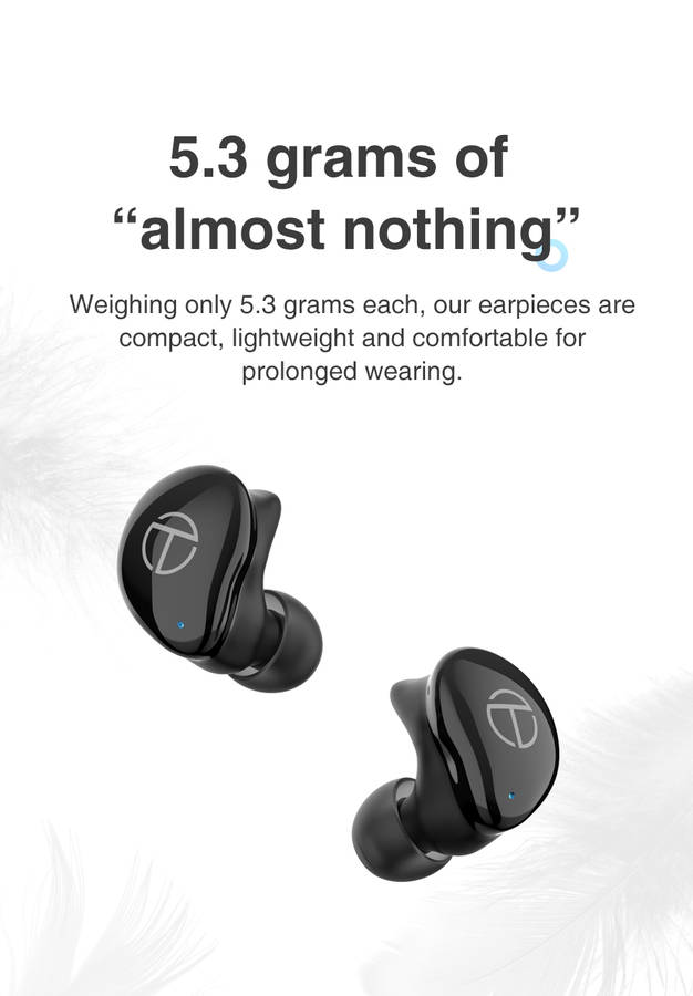Specification: Model Number: TRN-T200 bluetooth Version: 5.0 Color: Black Interface: bluetooth/Micro USB Earphone battery capacity: 50 mAh Earphone weight: 5.3 grams (single side) Charging bin weight: 36.9 g (unilateral) EarphoneCharging bin capacity: 600 mAh Playing Time: About 6.5-7 hours Standby Time:180 hours Effective Distance: About 10m Charging Time: About 1.5 hours Color: Black Volume Control: Yes With Microphone: Yes Waterproof: Yes Voltage:5V Function:Voice Control