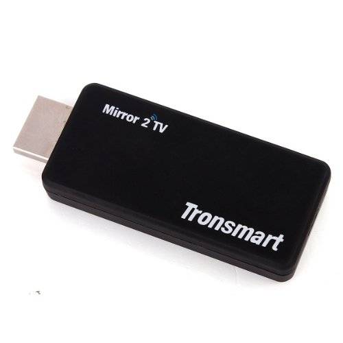 Tronsmart Mirror2TV (T1000) is a new generation of HDMI HD Media Streamer after Google Chromcast. It is a remote-free cross-platform (iOS; Android; Windows; and OS X)wireless display device; which receives and displays the contents you love from internet and your own portable devices (smartphones; tablets; notebook and Mac). It casts video; audio; photos; MS office files; PDF files; games to HDTV or projector wirelessly. It can mirror whatever shown on the screen of your smartphone; tablet; notebook; PC to your HDTV or projector. Overall; it is a useful tools for your home multimedia entertainment; also a powerful tools for your office presentation SpecificationNetworking: 802.11n 150 Mbps WiFi (b/g/n compatible) with WEP; WPA and WPA2 support. Builtd in Realtek RTL8188 Wifi Module 2.4Ghz OS: Linux Video Outputs: 480p (HDMI); 720p (HDMI); 1080p (HDMI) Support Video-formats: avi; divx; mkv; ts; dat; vob; mpg; mpeg; mov; mp4; rm; rmvb; wmv; etc. Support Audio-formats: MP1; MP2; MP3; WMA; OGG; ADPCM-WAV; PCM-WAV; AAC etc Support Picture-formats: JPEG; BMP;PNG etc. Support File-formats: Adobe PDF; MS Word; Ms Excel; Ms Powerpoint; etc. Standards: Ezcast; Miracast; DLNA; Airplay Power Input: 5.0V-1.0A power adapter: USB powered System Requirements: Requires a laptop; smartphone; or tablet support Miracast wireless display; HDTV with available HDMI input Package Contents 1 x Tronsmart T1000 Mirror2TV Mircast Dongle 1 x Installation Guide 1 x USB cable with wifi module *NOTE: HDMI cable is not included