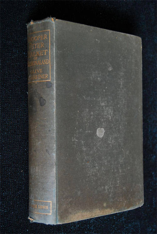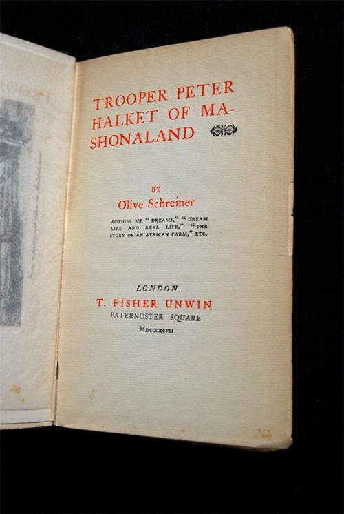 TITLE: TROOPER PETER HALKET OF MASHONALAND BY OLIVE SCHREINER 1ST EDITION 1897 DESCRIPTION: HARDCOVER WITH PREVIOUS OWNERS NAME ON INSIDE AND EDGE WEAR & TEAR TO BOOK AS IN PHOTO. HAS A FEW MARKS AND TANING TO PAGES. T.FISHER & UNWIN LONDON 1897 |