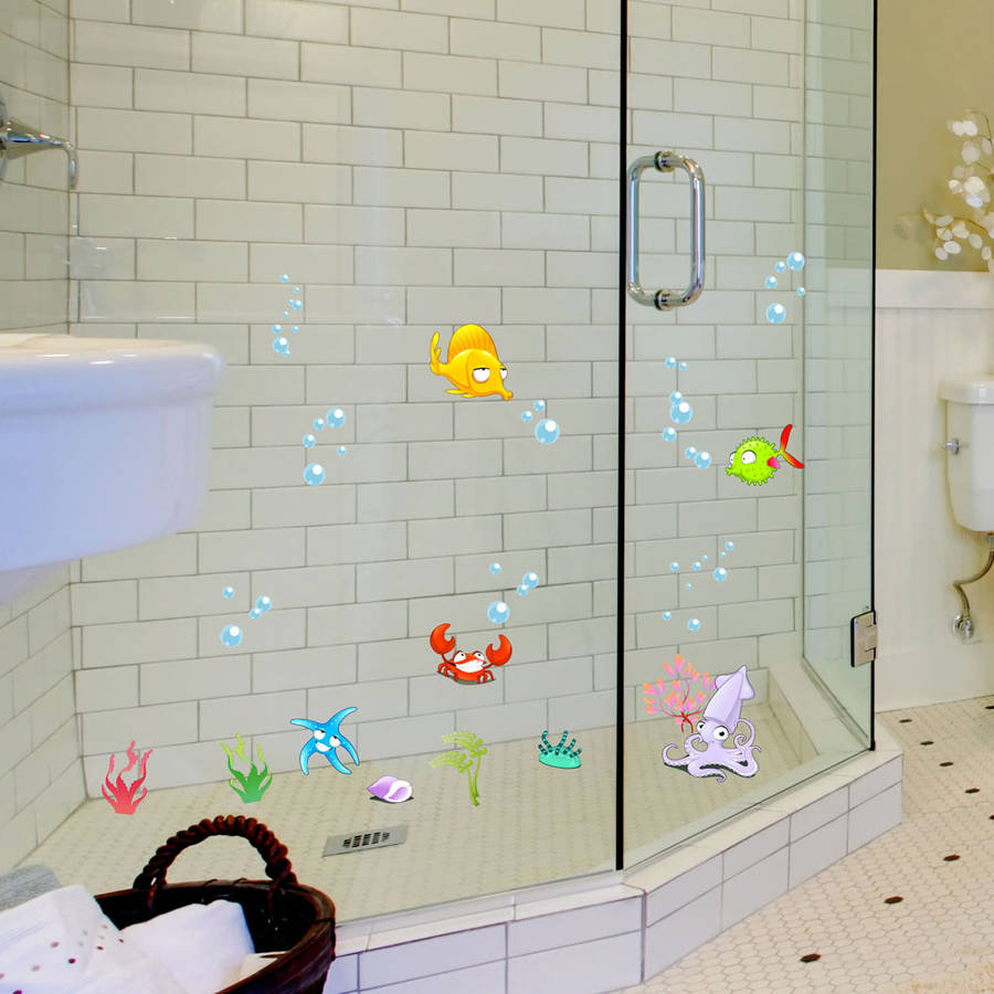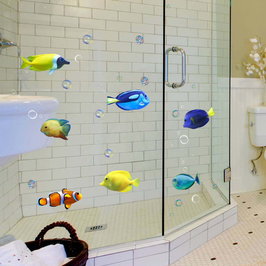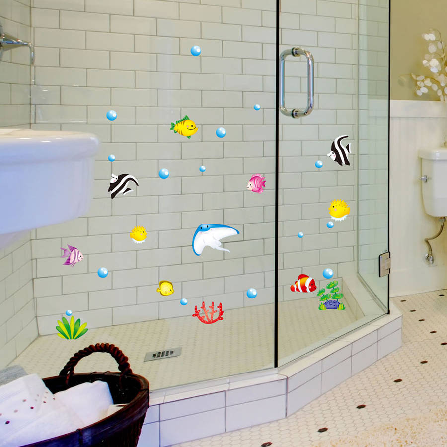 Tropical Cartoon Fish Sea Bubble Ocean World Removable Wall Bathroom Sticker Glass Pastes Decor