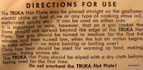 TRUKA HOT PLATE : NOTHING GETS BURNT, NOTHING BOILS OVER : WITH INSTRUCTIONS