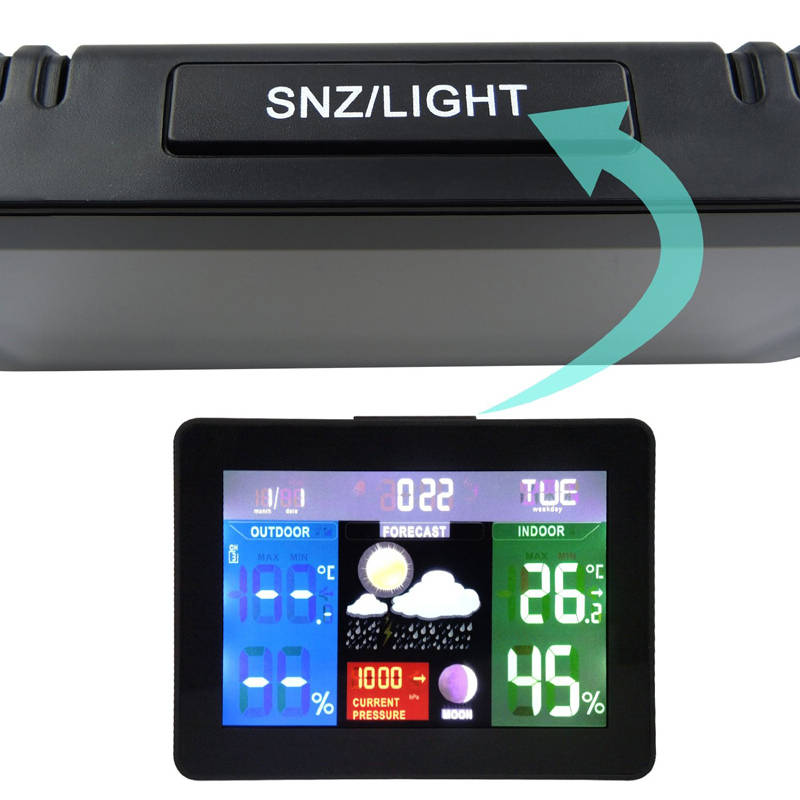 Description: TS-71 Indoor Outdoor Temperature Monitor Digital Weather Station DCF77 RCC Thermometer RH% Barometric Pressure with 2 Wireless Sensor This Wireless Weather Station