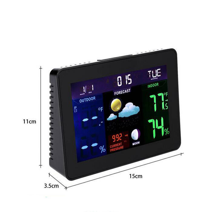 Features: Measure Indoor / Outdoor Temperature / Humidity and Barometric Pressure. Weather forecast: Sunny, Partly Sunny, Cloudy, Rainy and Stormy. Low battery indicator for outdoor sensor and station. Display day of the week, date, and time. Selectable temperature unit