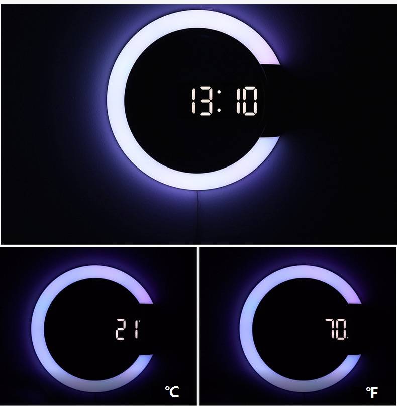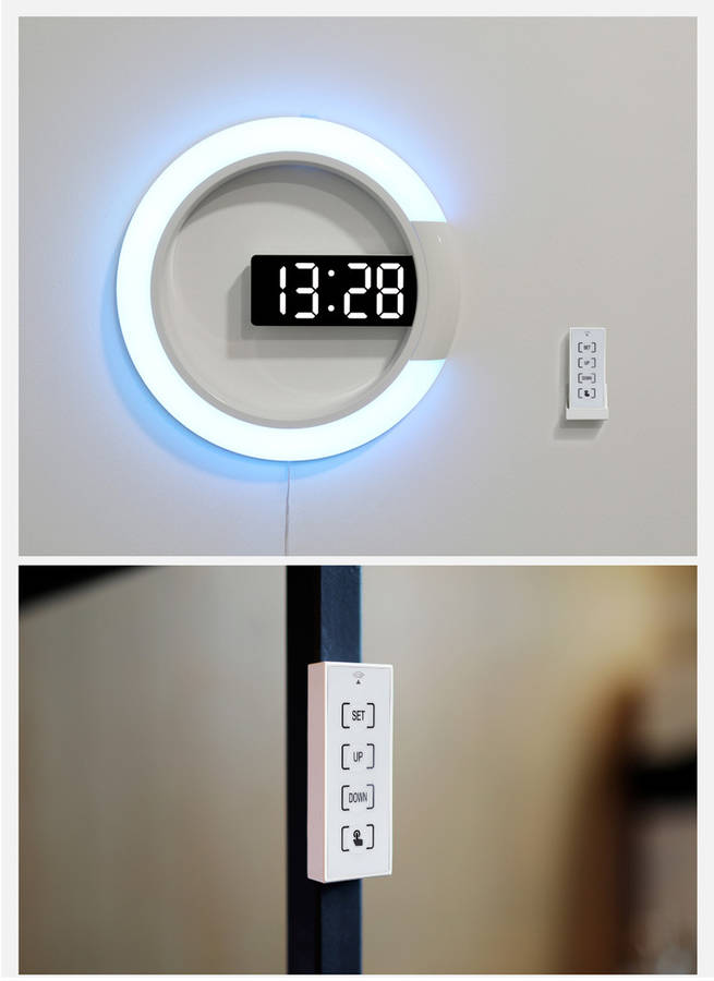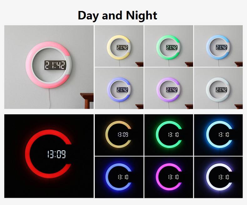 Features: LED time display 12/24 hour format selectable Alarm & snooze Temperature display in a or a Temperature range: 0a ~ 50a Night mode setting (18:00-06:00) Mirror function Time & Temperature switch display 3 light luminance level Four function button (SET,UP, DOWN, RGB) Time memory function (1XCR2032 battery for time memory) Power consumption: 1 x CR2032 battery for clock & sensor (not included) USB charging cable(included) Package Included: 1 x clock 1 x power cable 1 x remote control 1 x stand 1 x manual