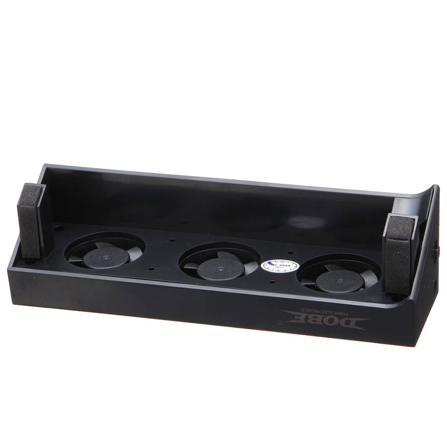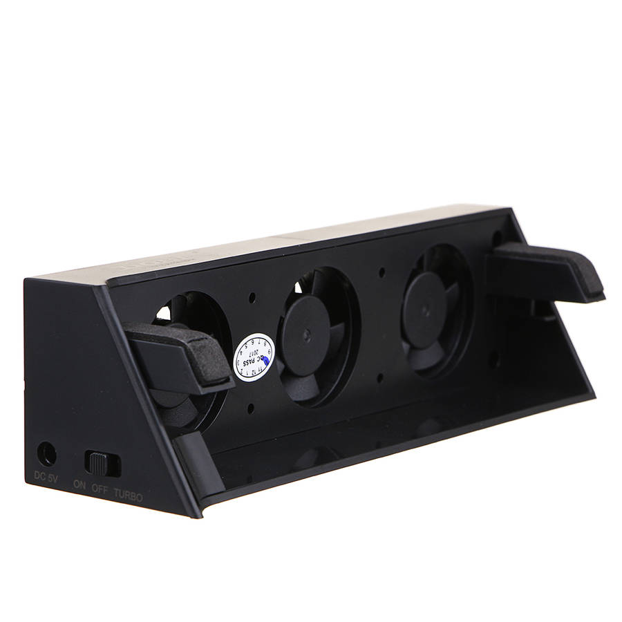 Package weight: 0.11 kg Feature: --This cooling fan simply clips onto the back of the console and is powered via the included USB power cable. --Convenient to carry and easy to use with the PS4 Slim Edition console. --The automatic mode cooler will turn on when your device for PlayStation 4 gets hot and turn down when it gets cool again. --The fan has a total of 3 fans that effectively cool the console without disruptive noise. --The turbo mode can be used for additional cooling which is necessary in confined spaces or after prolonged gaming. Specification: Scope: Suitable for PS4 Slim mainframe Material: ABS Color: Black Working voltage: DC 5V Fan type: DC5V 1.15A, 10000±10% Package Included: 1 x Cooling Fan For PS4 Slim 1 x USB Cable 1 x User manual More details: