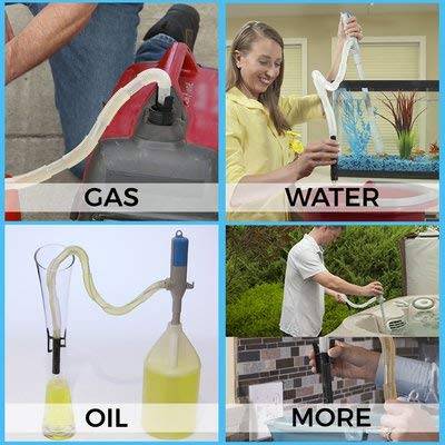 This is an affordable manual chemical transfer pump designed for quick and easy emptying of gas cans of various sizes. It eliminates the lifting of large, heavy, gas cans and spilling wasted fuel. Up and down operated flexible spring type bellows allow smooth operation and high powered discharge. Features: Lightweight and portable Battery powered Automatic Cordless Auto stop sensor that prevents spills Easy, fast and no mess Transfer over a gallon in seconds Made of corrosion-proof material, self-priming, durable for long-lasting use Safely and easily with this convenient handheld pump How to use: Immerse the suction end of the pump into the liquid (ex. Gas Can) Insert the tube into a container to receive the liquid Turn the pump on. Caution: Do Not over fill the container. Avoid pumping liquid to a container higher than the pump's motor housing When finished, keep the pump upright and lift the handle above the pump mechanism to drain any liquid back into the original container. Do Not lay pump down until all liquid has been drained from the tube and pump. Run water through the pump after using it with any other liquid. This will rinse the interior and extend the life of the pump.