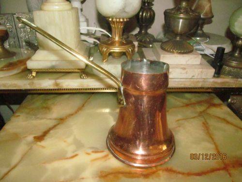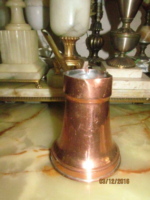 VINTAGE SILVER LINED TURKISH COFFEE POT - COPPER WITH BRASS HANDLE