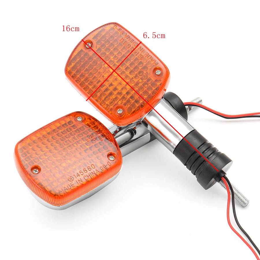 Description: Perfect Replacement For Your Old Motorcycle Turn Signals Bullet Style with Chrome Finished and Amber Lens Increase Safety And Visibility For Both Daytime And Night Superior Illumination & Stability Waterproof, Dustproof, Weatherproof, Shock-Resistant Easy Installation. Plug And Play Specification: Product Name:Turn Signals Light For Honda Condition: New Manufacturer Part Number: M03173 Placement on Vehicle: Left, Right, Front, Rear Surface Finish: 12V Custom Easy Mount Bolt On Flasher Warranty: Yes Size: Total length: 16cm Light: L 8.5cm x W 6.5cm x H 5.3cm Lens Color:Amber Light Color:Amber Voltage: 12V Black wire: negative Red line: positive Housing Color :Chrome Screw Diameter:8mm Material:ABS plastic Fitment: For HONDA CRUISERS: SHADOW VT400 VT600 VT750 VT1100 STEED VLX400 VLX600 REBEL CA250 400 CMX250 CMX400 MAGNA VF250 VF750 VTX1300 VTX1800 Note: Please check the mounting hole of your motorcycle and make sure it is 8mm. Modification may required for some models. Professionals install is strongly recommended to avoid trouble caused by inexperienced installer We provide clear pictures, measurements where possible. Please check as much as possible to make sure the item is the one that you need. 2Please allow 0.5-1 inch difference due to manual measurement.(1inch=2.54cm) Package Included: 2 X Motorcycle Turn Signal Lights