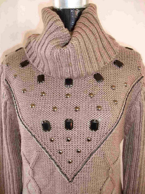 Turtleneck Elegant Long Jersey With Pretty Pattern Color: Camel
