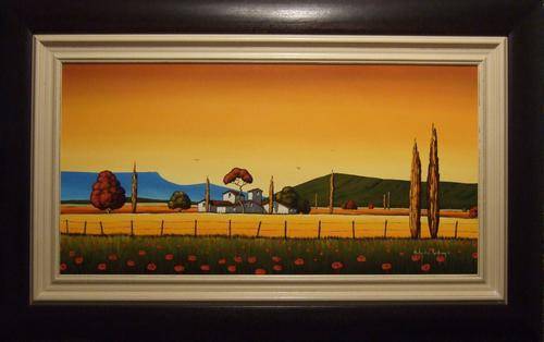 His first landscapes were done using the name “LaWaai”. At the moment he paints, using his own name – a very colorful scene, originally with a very strong Tuscan influence, but it developed into a South African landscape.