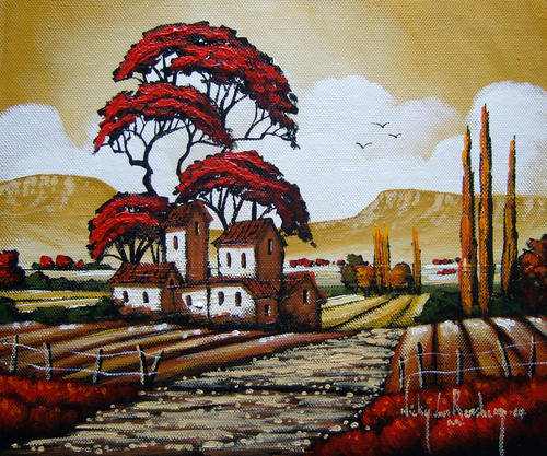 Tuscany Village - AN ORIGINAL NICKY VAN RENSBURG PAINTING 300 x 250 MM (Value R 2700)