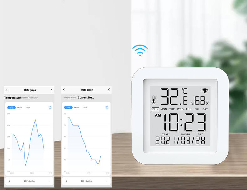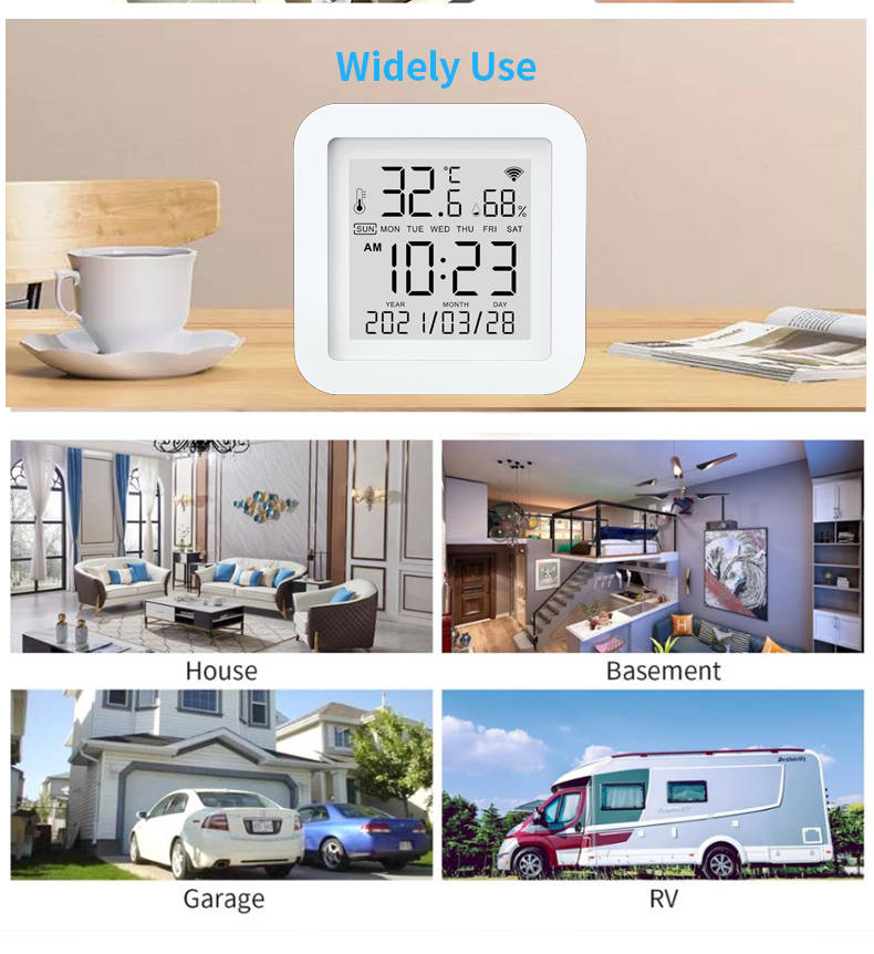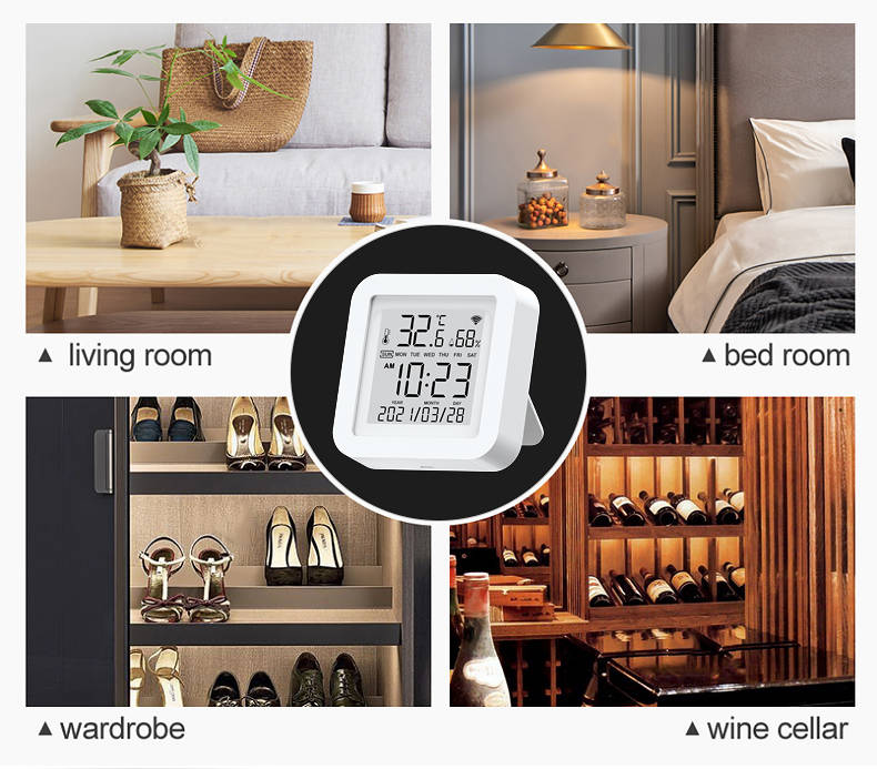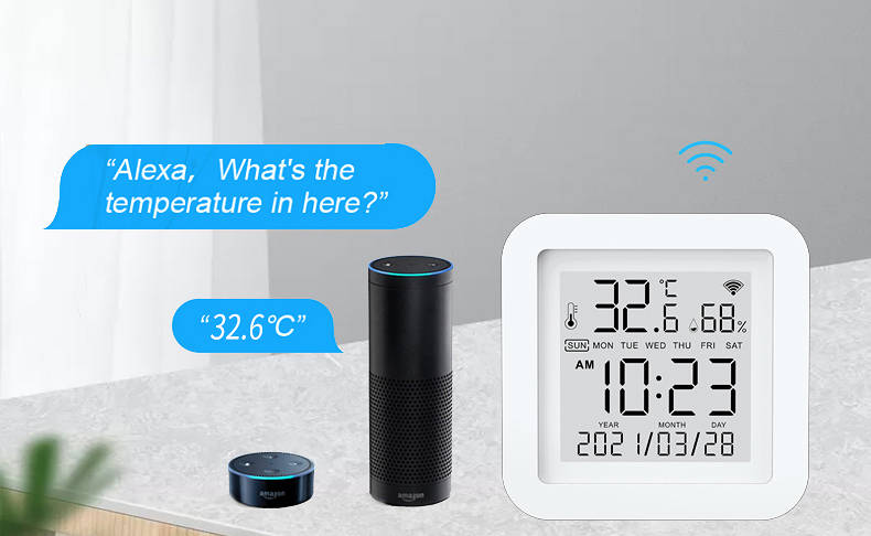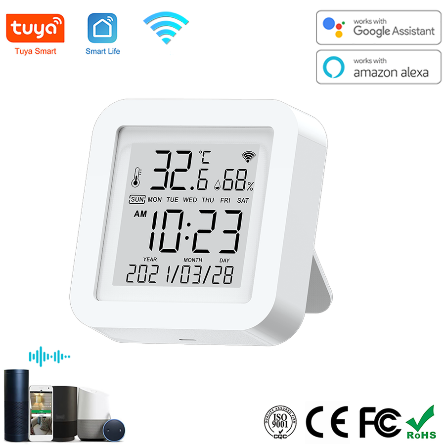 Product | Tuya WIFI Temperature Humidity Smart Sensor Clock Digital Display Remote Control Thermometer Support Alexa Google Assistant |