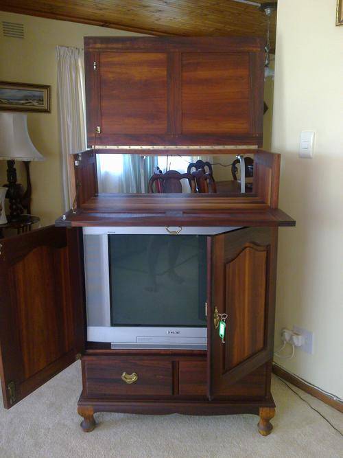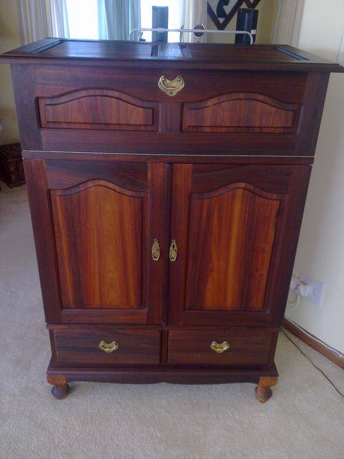 Stunning Blackwood TV cabinet. Multiple options with 2 draws, upper section has fold down door as well as lid can be raised. Other possible uses is a drinks cabinet. Pick up only.