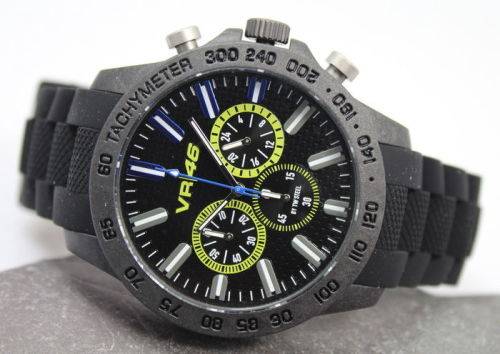 VR|46 and TW Steel, the perfect combination in a Sports Chronograph Watch. Model VR114 has a case diameter of 45mm and features a White silicon strap with a black dial.