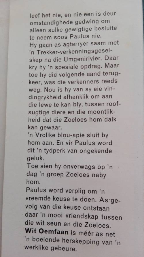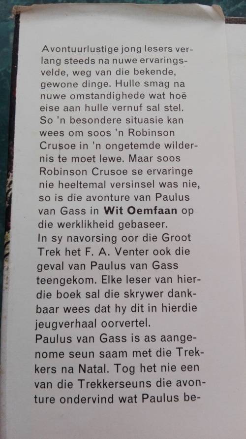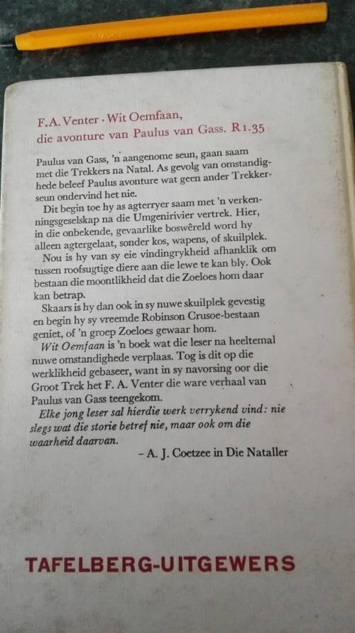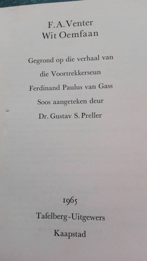 1) WIT OEMFAAN ; Die Avonture van Paulus van Gass ; Hardcover published by Tafelberg 1965 First Edition No. of Pages ; 144