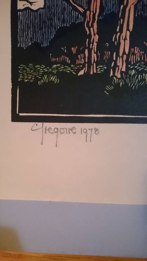 Authentic Gregoire Boonzaier linocut for sale from a private collector's collection. The linocut has been colored in with water colors by the artist and signed and dated 1978 in pencil. The layout is portrait and size of the picture is 305x225mm. Done on the classic and collector's favourite, brown paper.