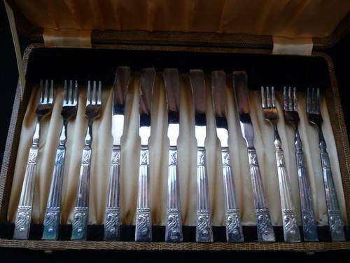 Twelve Piece EPNS Fruit Set in Original Box - Beautifully Toned , Never Used