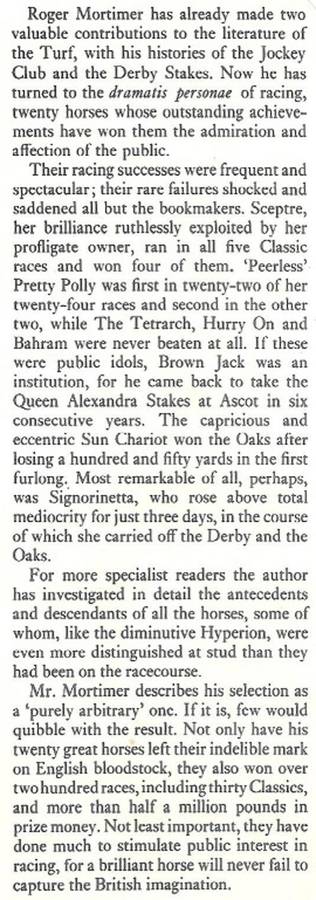 Twenty Great Horses, Of The British Turf by Roger Mortimer