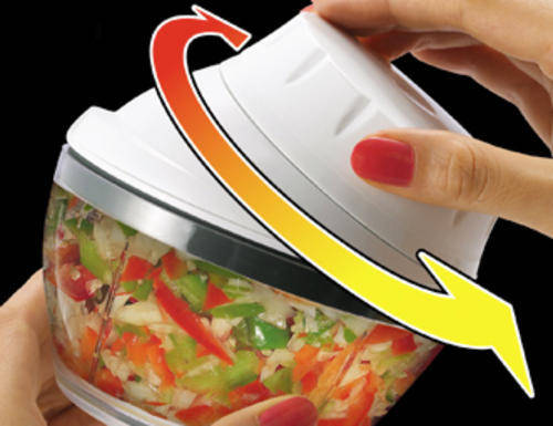 Chop, slice, puree Perfect for salsa, pesto, onions, garlic Dual side sharpened blades Easy to clean and dishwasher safe Compact and convenient