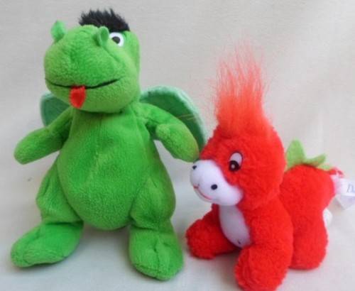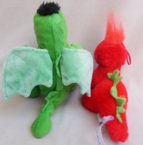 THE LITTLE RED 'HERZ' DRAGON IS 13CM TALL AND 20CM LONG AND WAS A PROMOTIONAL ITEM FOR THE MAZDA 323 CAR AND HIS LITTLE GREEN FRIEND IS 19CM TALL AND 18CM LONG. BOTH ARE IN VERY GOOD CONDITION AND TOO CUTE! REFER IMAGES SHIPPING R50 (COMBINED SHIPPING PRICES AVAILABLE ON REQUEST)