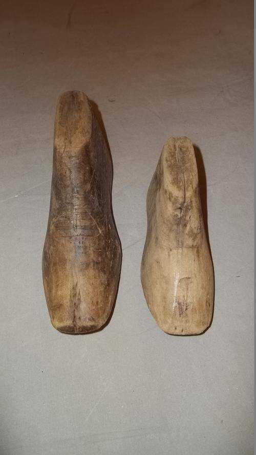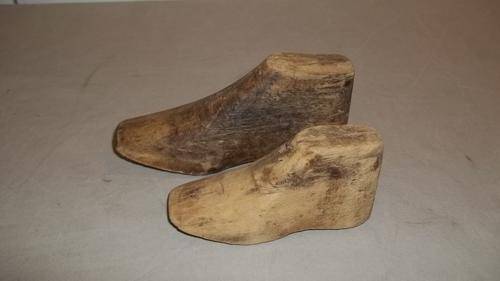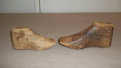 THESE TWO WONDERFUL ANTIQUE COBBLER'S WOODEN CHILDREN'S SHOE MOULDS MEASURE 14.5cm AND 11.2cm RESPECTIVELY. CHILDREN'S SHOE MOULDS ARE A RARE FIND AND VERY COLLECTABLE. THE MOULDS ARE THE BASIC SHAPE OF THE SHOE AND THE COBBLER WOULD MOULD AND DESIGN THE LEATHER TO TAKE ON THE SHAPE OF THE SHOE. THESE TWO MOULD ARE FROM AN ERA WHEN CRAFTSMEN STILL MADE SHOES AND NOT MACHINES.