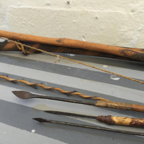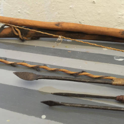 Two Antique Bushman's Bow and Arrows (String Animal Skin)