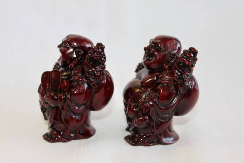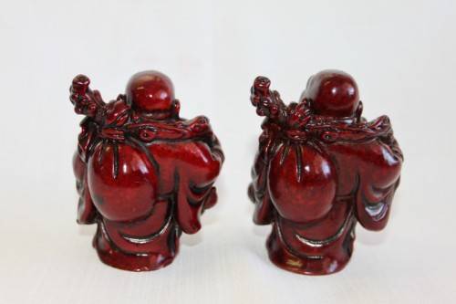 THESE TWO AWESOME CHINESE "LAUGHING BUDDHA'S" (BUDAI) ARE IN A TRADITIONAL RED LACQUERED FINISH AND EACH FIGURINE MEASURES 7cm LONG x 6cm WIDE x 8.8cm HIGH. THE BUDDHA'S ARE IN STUNNING CONDITION AND HAVE NO VISIBLE CHIPS OR CRACKS IN THEM. THE ORNAMENTS WOULD MAKE AN AWESOME ADDITION TO ANY ORIENTAL THEMED APARTMENT. PLEASE VIEW THE PICS CAREFULLY TO FULLY APPRECIATE THESE AWESOME CHINESE LAUGHING BUDDHA'S AND TO CONFIRM THE CONDITION.