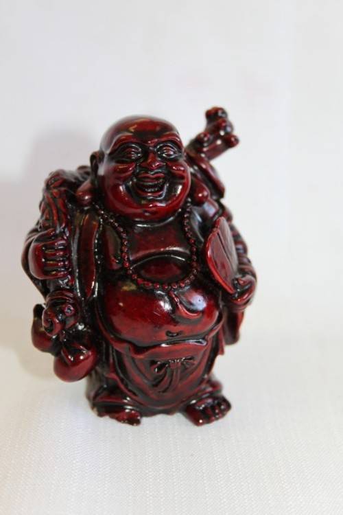 FROM THE INTERNET "Budai or Pu-Tai is a Chinese folkloric deity. His name means "Cloth Sack", and comes from the bag that he is conventionally depicted as carrying. He is usually identified with or seen as an incarnation of Maitreya, the future Buddha, so much so that the Budai image is one of the main forms in which Maitreya is depicted in China. He is almost always shown smiling or laughing, hence his nickname in Chinese, the Laughing Buddha. In the West, the image of Budai is often mistaken for Gautama Buddha, and is hence called the Fat Buddha."