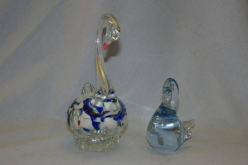 THESE TWO AWESOME HAND BLOWN ORNAMENTAL GLASS BIRDS WITH WONDERFUL DETAILING MEASURE 7.5cm AND 12.5cm TALL RESPECTIVELY. THERE ARE NO VISIBLE CHIPS OR CRACKS IN THE HAND BLOWN BIRDS.