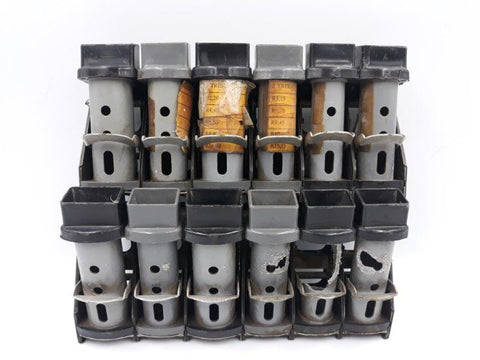 These two tremendous vintage South African bus conductors coin dispensers have holders for 5 cents, 10 cents, 20 cents, 50 cents, 1 rand and 2 rand. Fantastic to add to your collection. Perhaps the biggest development in manual fare collection is the coin dispenser, distributed by Jacques L. Galef. Mounted either in a driver's cab or on the belt of a conductor, the coin dispenser usually takes the form of a number of tubes fitted in a line together. Each tube holds a different denomination and tends to have some sort of trigger which will release the coin from the bottom. The holders have wear on them, they measure 5cm x 22cm x 10cm high.