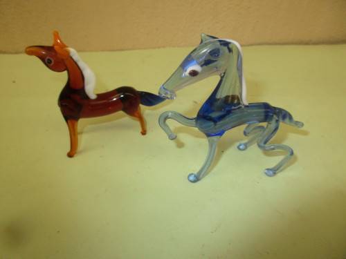 TWO BEAUTIFUL MURANO HORSES ONE B;UE ND THE OTHER BROWN BOTH WITH WHITE MANES