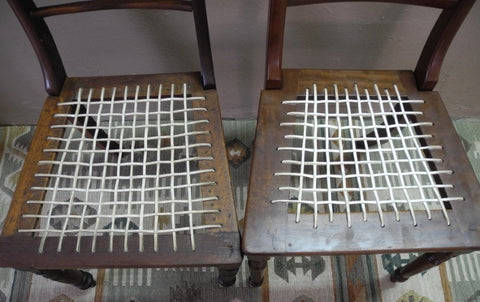 Two beautifully made Imbuia riempie seat occasional chairs.