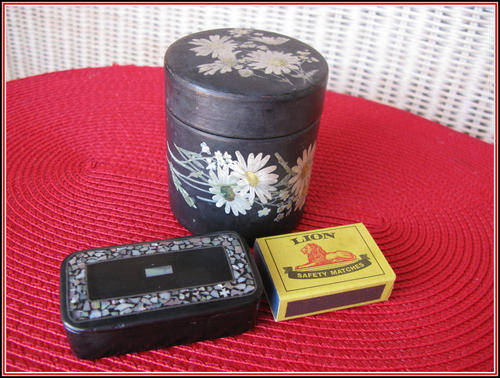 The rectangular one seems to be made of Bakelite with Mother of pearl inlaid border.