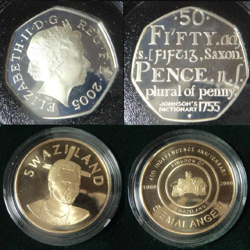Two Boxed Commemorative Coins of 2005 & 2008 (Great Britain &Swaziland)