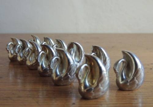 TWO BOXED SETS SILVER PLATED PLACE SEATING NAME HOLDERS - SWANS