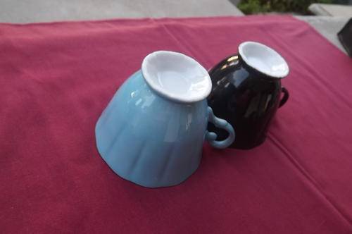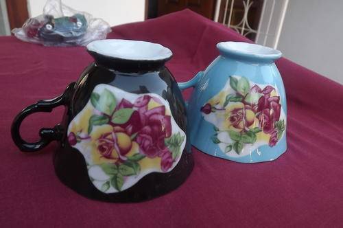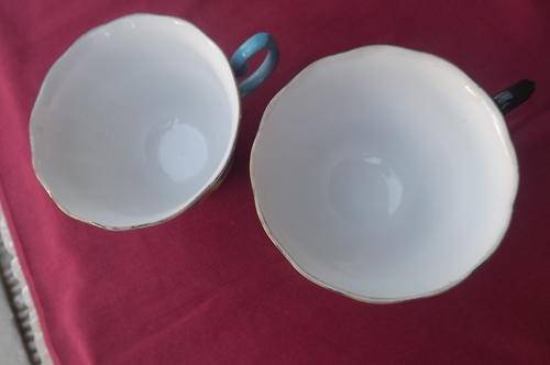 Two by loose thin porcelain cups.1Blue & 1Black.Both with same floral design.Good condition